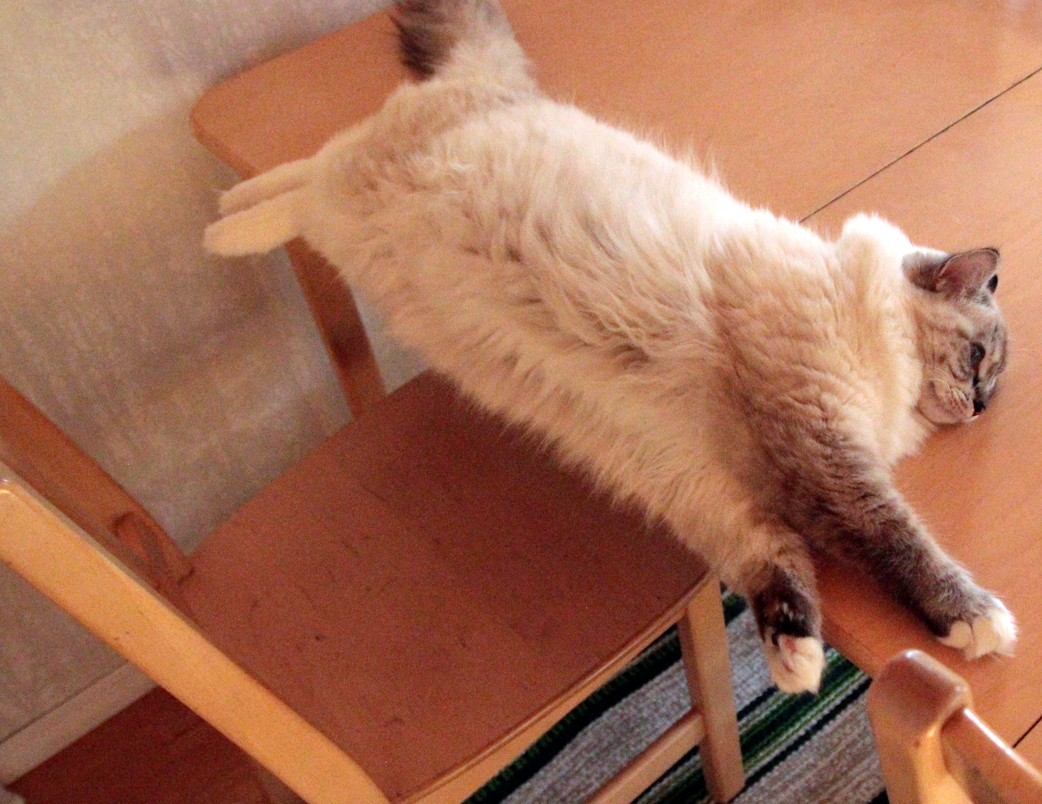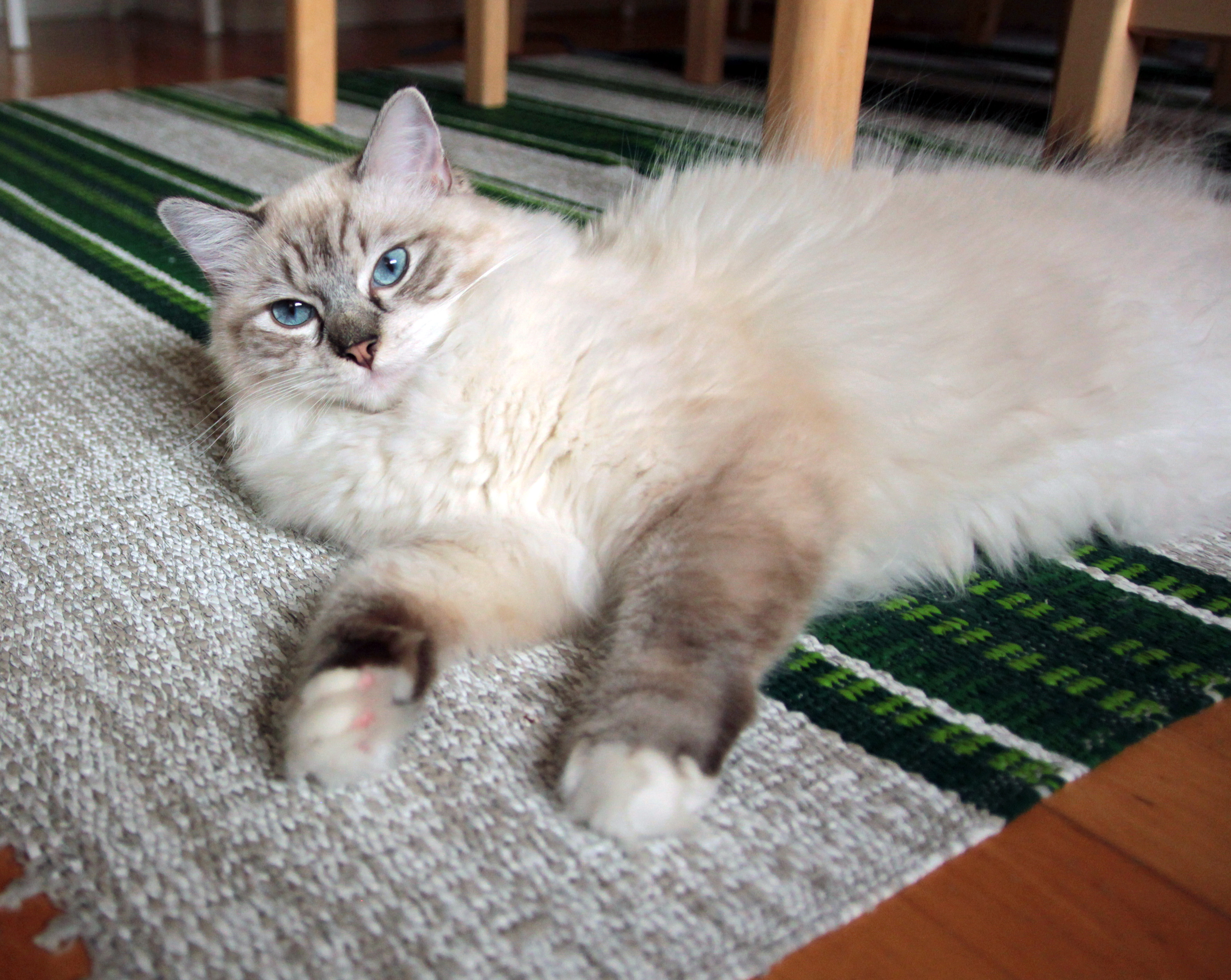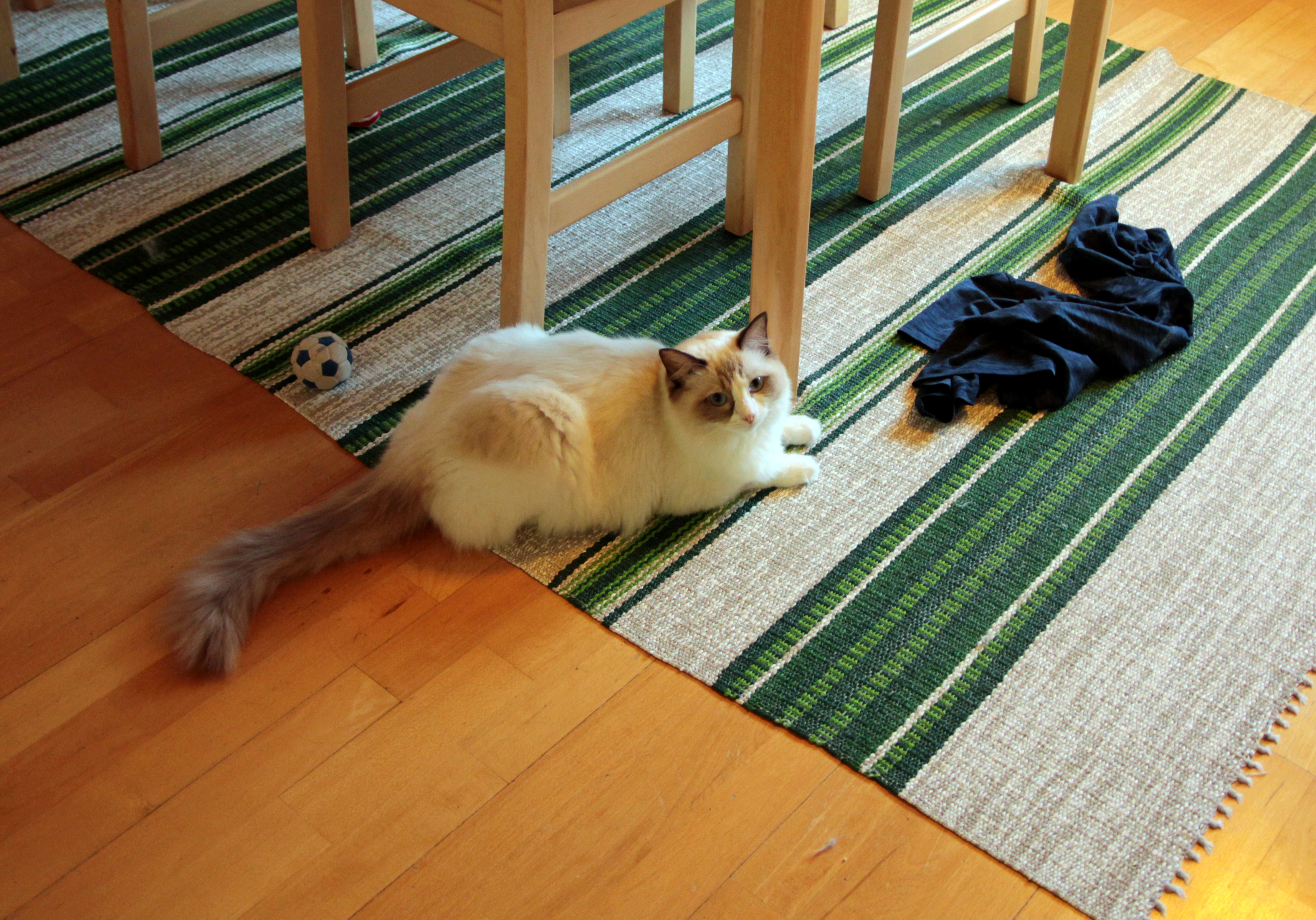 Kaikkihan sen jo entuudestaankin tietävät, että jättien kyky hankkia tarpeellista tavaraa on erehtymättömän onneton. Mitä lie kaikenlaisia kankaisia hiirulaisia, säihkyviä palloja, kiliseviä juttuja ja pehmeitä makuualustoja jätit isännilleen kiikuttavatkin, me ragdollit yleensä sellaisten kanssa jaksamme touhuilla korkeintaan sen aikaa, että jäteille tulee hyvä mieli siitä ”tällä kertaa vihdoinkin onnistuneesta hankinnasta”. Todellisuudessa (tätä emme kuitenkaan halua sanoa liian suurelle yleisölle ääneen, sillä jättien yrityksiä on huvittavaa seurata) meille riittäisi yksi tavallinen puinen tikku. Sopivan paksu, ettei sitä saa heti ensi-istumalta järsittyä poikki, mutta kuitenkin sopivan ohut, että se mahtuu kivasti suuhun. Ja sopivan pitkä, että kaikilla tassuilla pääsee yht’aikaisesti koskemaan, mutta kuitenkin sopivan lyhyt, että sitä kykenee liikuttelemaan osumatta kaikkiin nurkkiin ja huonekaluihin.