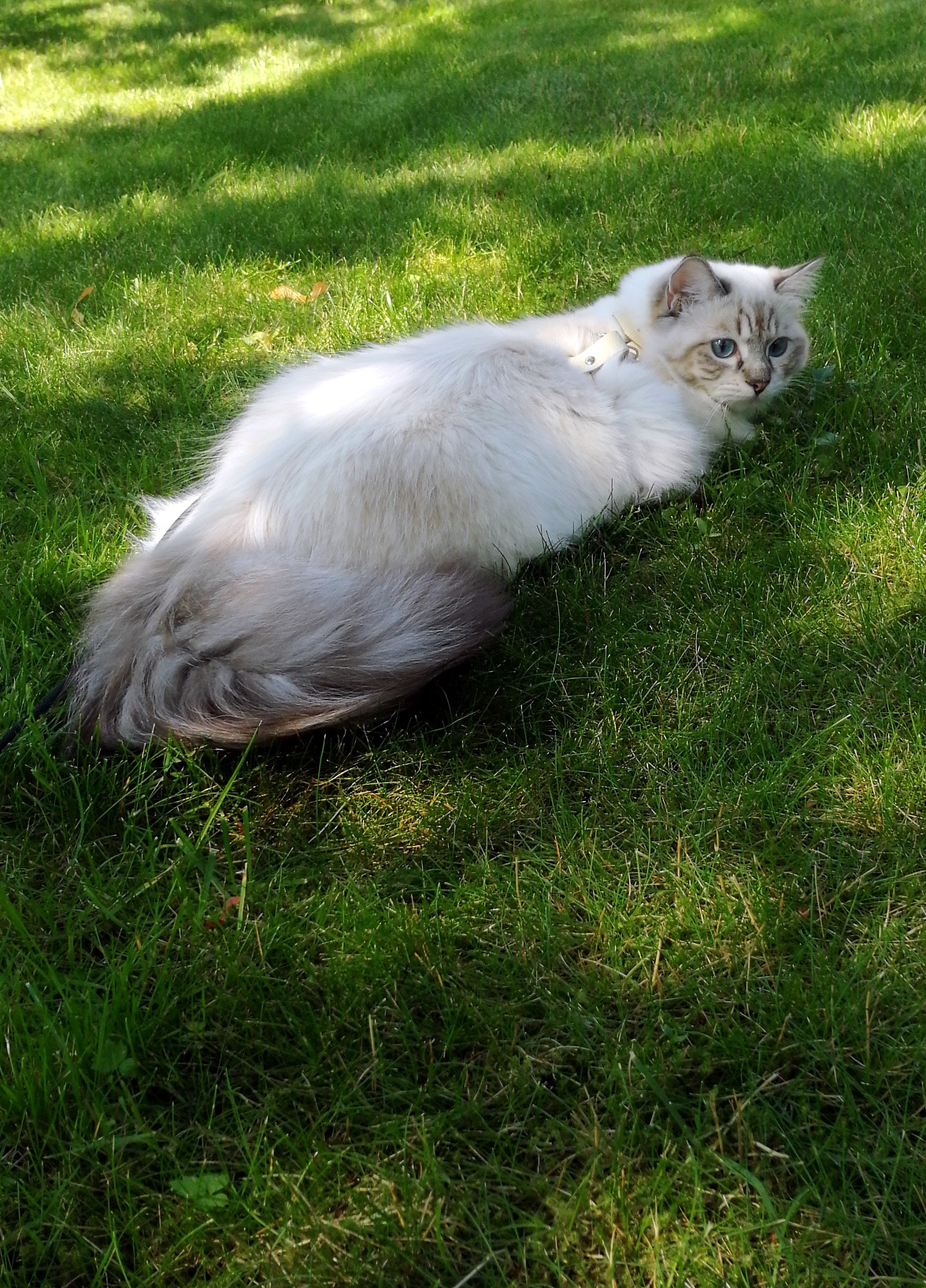 Hmmm…. Rasmuksella on ollut eläinlääkärikäyntejä munuaisten vajaatoiminnan vuoksi ja näitä käyntejä on harmillisesti tiedossa enemmänkin. Me yksivuotiaat emme vielä tiedä mitä kaikkea tulevaisuus tuo muassaan. Toivomme kuitenkin hartaasti, että Rasmus saa olla meille oppaana aikuisuuteen tulevinakin vuosina. Moonakin on oppinut syksyn aikana jo hyppäämään keittiön ja kodinhoitohuoneen tasoille (reilu metri) puoli vuotta Lunan jälkeen, mutta parempi sekin kuin ei milloinkaan. Alastulossa on tosin vielä opeteltavaa: nyt jokainen alastulo kuulostaa samalta kuin kumivasaralla klownin päähän kumautettaessa. Mikään suloliikkeinen parkour-kissa ei Moonasta taida sukeutua, vaikka kiipeily sujuukin rivakkaasti.  Tähän loppuun kuvakimara kuluneilta kahdelta kuukaudelta sitten viime päivityksen, jolloin talvi oli vasta ajatuksen tasolla.